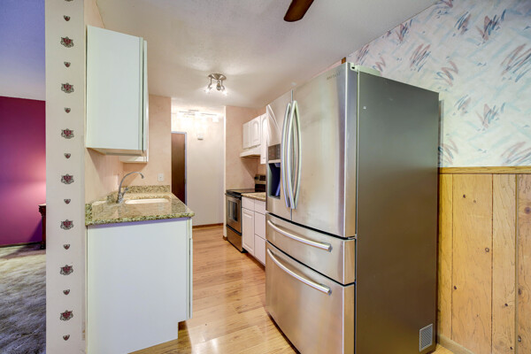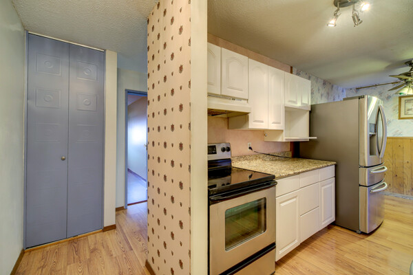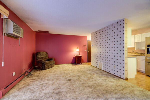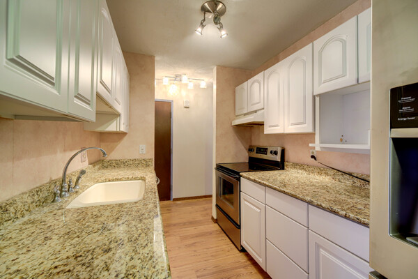 Great location! Offered below market as it needs a bit of TLC. Being sold "As Is". This affordable 2 bedroom, 1 bathroom with detached garage (#85) features updated flooring, kitchen. Some updated lighting and updated bath. Boasts a large living room with private patio/deck. The community features outdoor and indoor pools along with other amenities including outdoor sport court, exercise room, party room, picnic area, and sauna. Close to shopping, entertainment and easy access to the cities.
