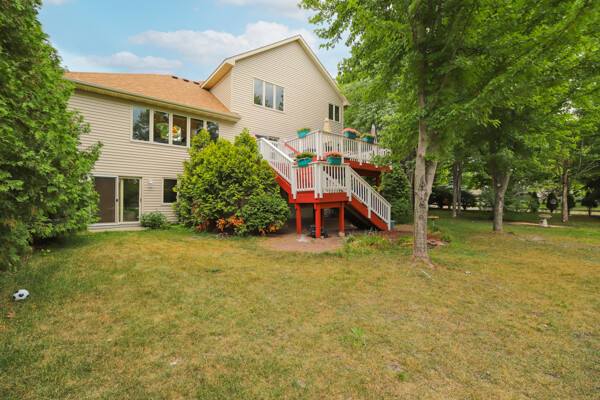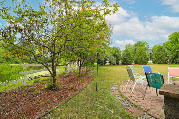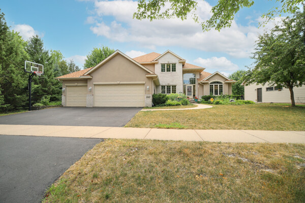 Welcome to this amazing two-story home on a premier corner lot offering serene and tranquil views year-round. The main floor level deck has stairs to a paver patio below. The gracious open floor plan includes a great room featuring a wall of windows for exhilarating nature views and abundant natural light. The kitchen has a breakfast bar, workstations, and a walk-in pantry. There is a main-floor flex room which could be an office, bedroom, or more. The finished lower-level walkout makes this home near 4,000 square feet. Just steps to a walking trail. New roof, siding, gutters, water heater, refrigerator, stove, microwave, dishwasher, washer/dryer, and fireplace inserts in 2020-2022. Large fenced-in backyard with a setback firepit and pond.