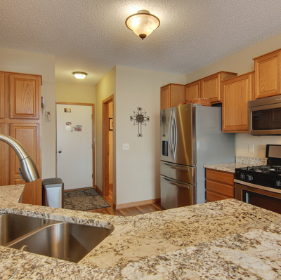 Wow, here it is! Large townhouse with a ton of natural light. Upper level boasts 3 large bedrooms including a master suite with large master ensuite bathroom with jetted tub, dual sinks and separate shower. There's another full bath up as well as a large loft. The master is at the back of the property with views of the pond while the other 2 bedrooms are separated at the front. The main level has a gorgeous wood ceiling with updated gas fireplace and again, great views of the space and pond, probably one of the best locations in the entire development! The kitchen has granite counters and stainless steel appliances including a gas stove, there's also a 1/2 bath located on this level. Lower level is a walkout to the green space and pond views with large patio with a family room, 1/2 bath, laundry area and storage room. You won't find this kind of space, views and light in many townhouses in Lakeville South schools! Open houses Saturday and Sunday. Welcome Home!