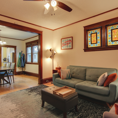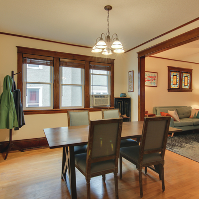 Beautiful 1.5 story home in the NE Minneapolis Arts District. Live within walking distance to many parks, restaurants, bars, and artist studios. Minutes from the neighborhood grocery store. Hardwood floors throughout with natural woodwork on the main level. Two bedrooms upstairs, two on the main level. Large