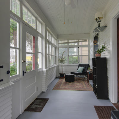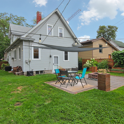 master bedroom with a walk-in closet on the upper level. Full bathrooms on every level! Three season porch in the front and a patio with fire pit in the back yard!