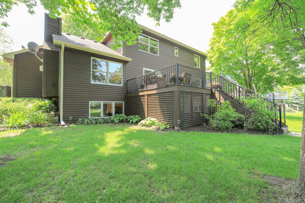 Here's the Home AND Neighborhood you've been looking for! Absolutely GORGEOUS, Meticulously Cared for home in Near Mountain Neighborhood. Spectacular large flat lot that backs up to a pond. so many fabulous features including a new Roof in 2022, Beautifully Updated kitchen 2025, Main Floor Office, Main Floor Laundry Room/Mudroom, 4 Bedrooms on Upper Level, 2 Family Rooms!! - One on Main Floor and One in Lower Level, Stainless Steel Appliances, Quartz Countertops Formal and Informal Dining, Maintenance Free Deck to help you enjoy one of the BEST yards in the entire neighborhood! Gas-Burning Stone Fireplace, New Carpeting 2025 and New Hardwood Floors 2024, Freshly Painted Interior 2025, Fully Finished Lower Level with Lookout and Egress Windows - This lower level is very large with flexible space which is unique for home in the neighborhood and includes in wall speakers for home theatre, entertaining or recreation, Whole Home Water Purification System, Refinished Lower Level 3/4 bathroom 2025 and potential for a lower level 5th bedroom if the new home owner elects to add one, Fabulous Lower Level Storage and Workshop area. Minutes to Downtown Chanhassen and Excelsior close to Shopping and Lake Minnetonka, Schools: Clear Spring Elementary, Minnetonka Middle School West and Minnetonka High School.